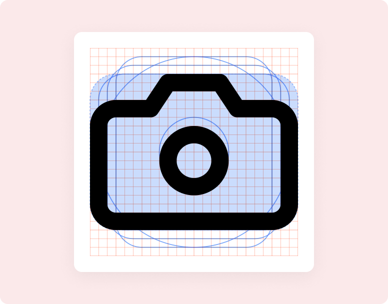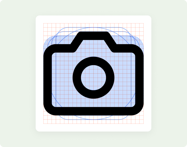 Each shape has different dimensions, but they all have a similar visual balance. Use key shapes as the basic building block for icon consistency.